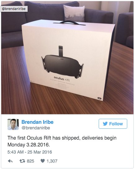 在长达四年之间历经募资、DK 开发者套件、消费者版本与被 Facebook 收购,Oculus Rift 的奇幻旅程终究也到了完成版出货的一天。该公司的主管 Brendan Iribe 在推特上证实了这个消息,并表示首批 Oculus Rift 预计将会在 3 月 28 日,「如约(刚好在三月前)」送到消费者的手上 -- 看来要准备迎接各种开箱文了,更别说还有一群开心迎接免费 Rift 的 Kickstarter 出资人应该都摩拳擦掌早早准备好要迎接 VR 生活了。